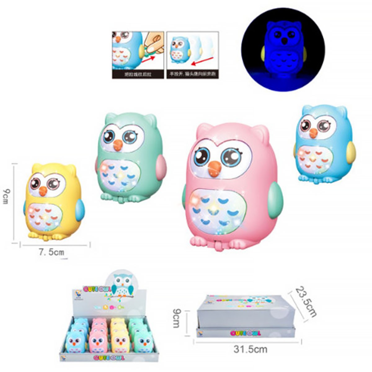 Búho de juguete de cuerda con luz