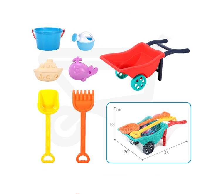 Carretilla Juguete De Playa Balde Rastrillo Moldes Juego 6p