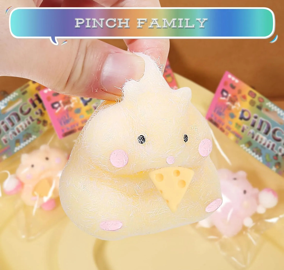 ¡Conoce a tu nuevo amigo para achuchar, el Hámster Squishy! Suave, adorable y abrazable, este pequeño hámster es perfecto para liberar el estrés o simplemente divertirse. Su textura blandita y su encantador diseño lo convierten en un compañero encantador para niños y adultos que disfrutan de un poco de relajación y juego. ¡Alegra tu día con esta adorable mascota blandita!